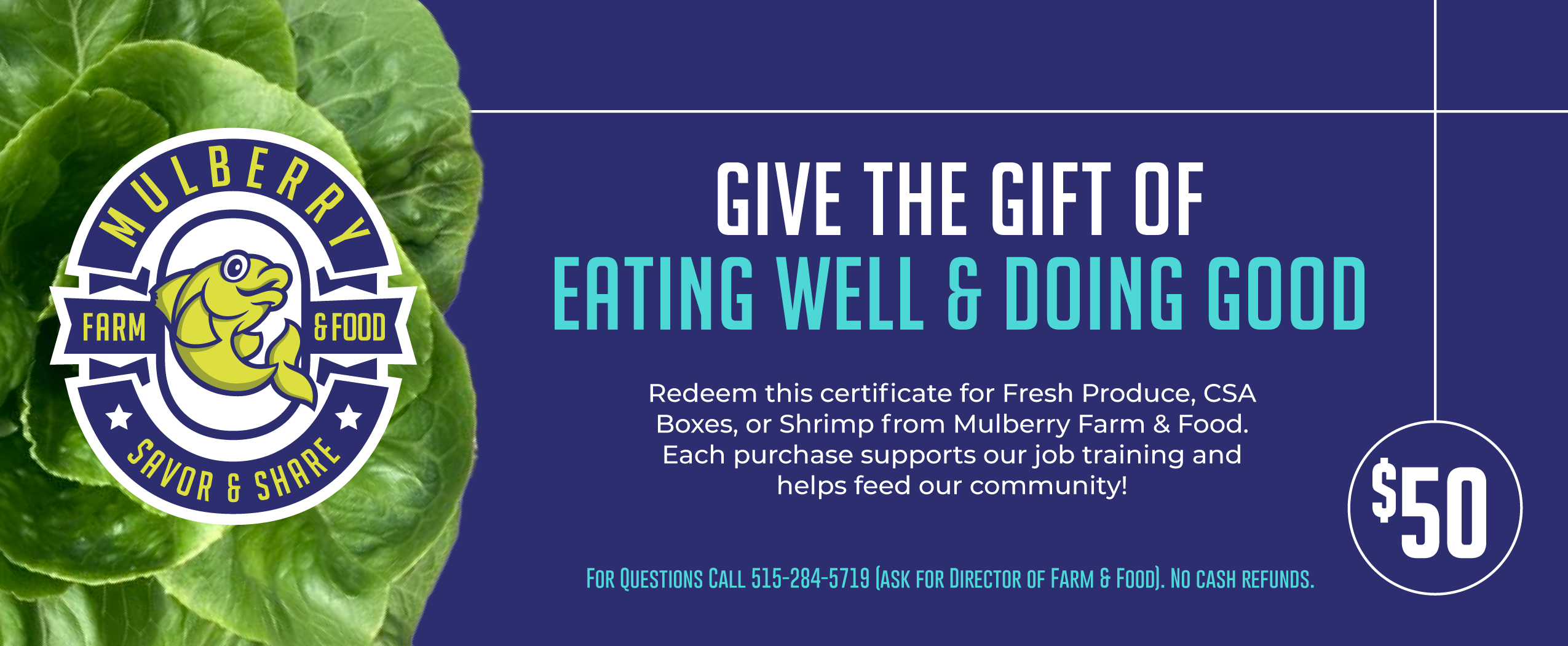 Each certificate is good for the amount listed. Can be used for al carte produce items, CSA boxes, and Shrimp. Please call if there is any produce items you are specifically wanted for availability. No cash refunds.Â
